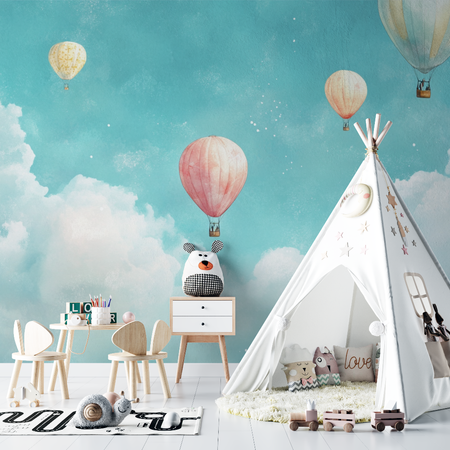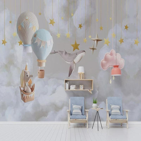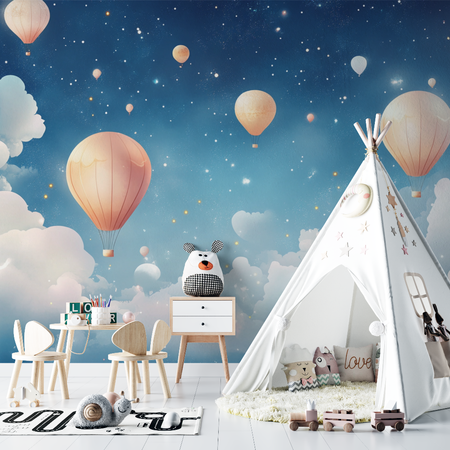 Mural Balloon Wallpaper with Peaceful Night Sky