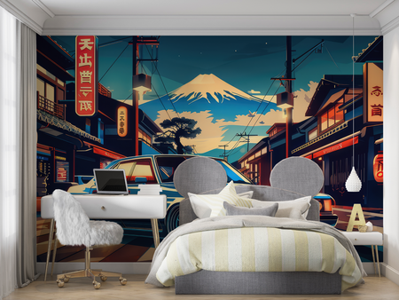 Chinoiserie Trees with Stripes Mural Wallpaper