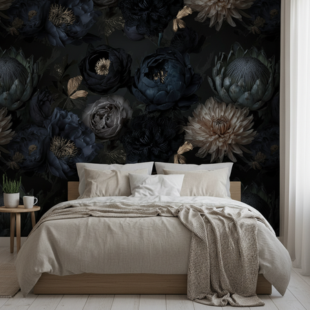 Dark Luxe Botanical Bloom Mural Wallpaper