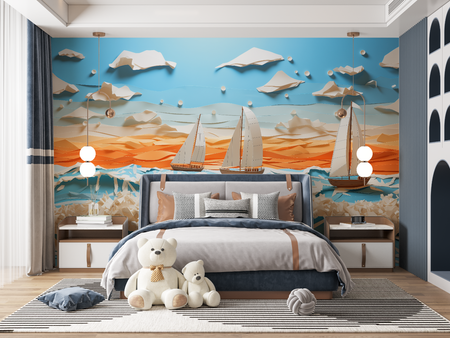 Mural 3D Boat Wallpaper for Kids