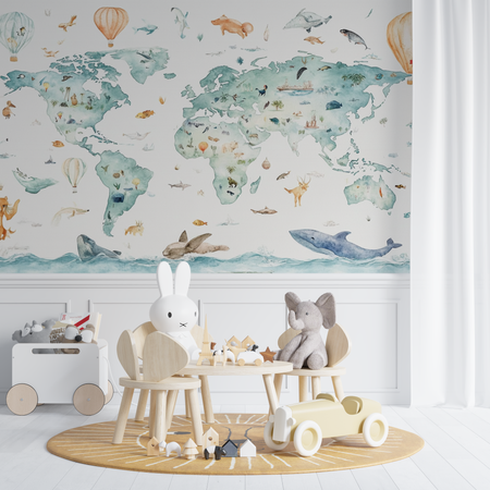 Mural Animal World Map Wallpaper