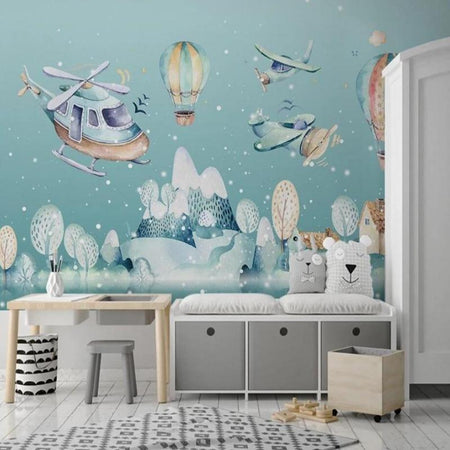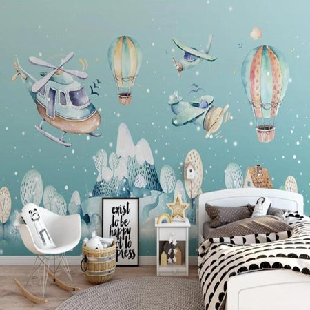 Mural Airplane, Helicopter, and Glider Wallpaper