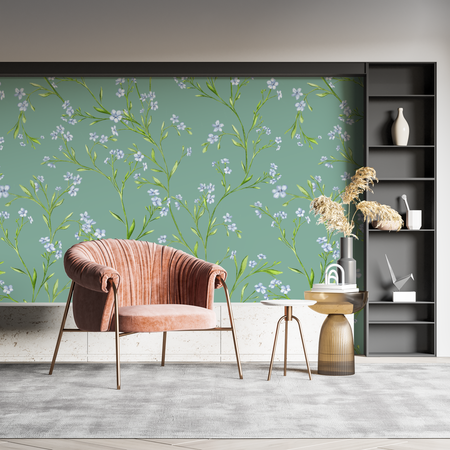Mural Aqua Floral Wallpaper