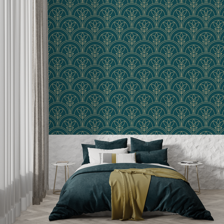 Mural Art Deco Gold and Petrol Blue Wallpaper