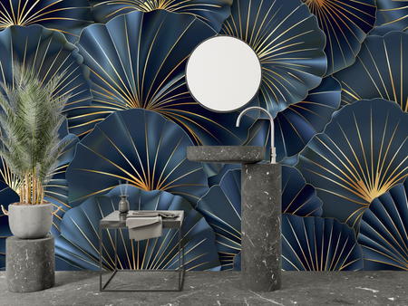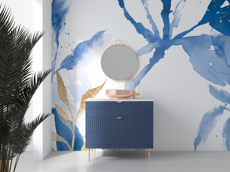 Mural Blue Gold Bathroom Wallpaper