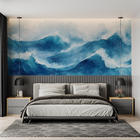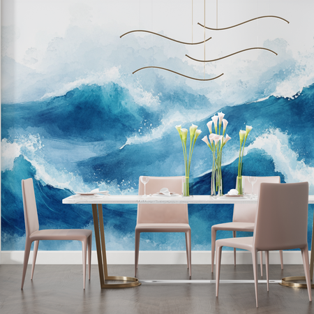 Mural Dynamic Blue Wave Watercolor Wallpaper