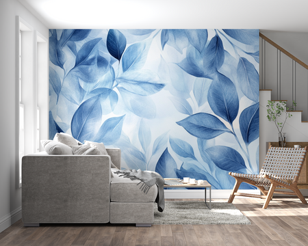 Mural Abstract Blue Leaves Watercolor Wallpaper