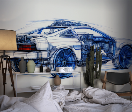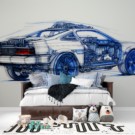 Mural Blue Car Technical Drawing Wallpaper