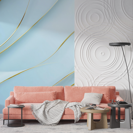 Generally, blue wallpaper complements soothing, gentle tones such as white, gray, and green. However, it also works beautifully with more dynamic colors like yellow, pink, and gold for a vibrant, unique interior.