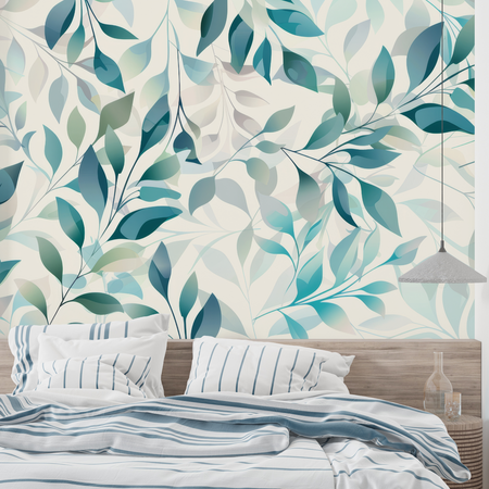 Mural Blue Green Leaf Wallpaper