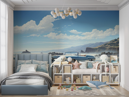 Mural Blue Cuban Car Wallpaper
