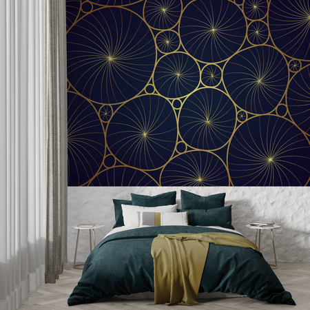 Midnight blue wallpaper creates a restful, soothing environment, perfect for bedrooms. Enhance its tranquil effect by pairing it with neutral shades such as white, gray, beige, and touches of gold. For a bolder approach, consider complementing midnight blue wallpaper with soft blush pink or vibrant teal. Floral or geometric patterns can further personalize your bedroom, transforming it into a calming yet stylish retreat.
