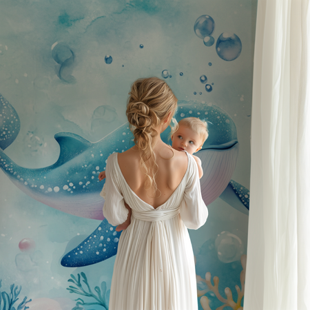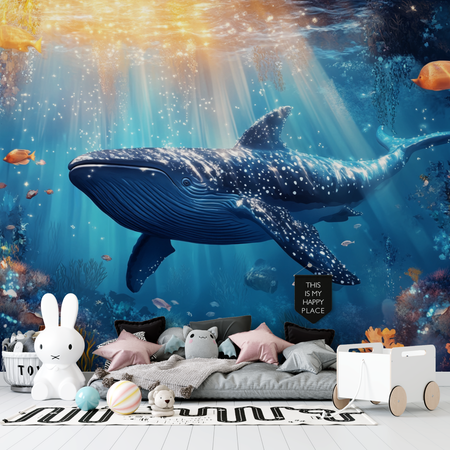 Mural Cute Marine Blue Cloud Animal Wallpaper