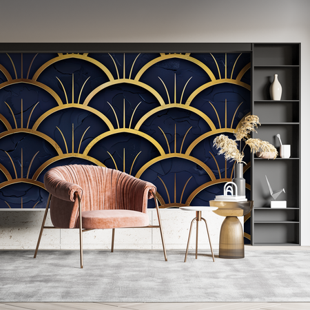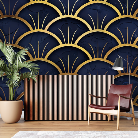 Mural Art Deco Blue and Gold Wallpaper Replica