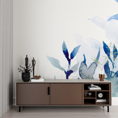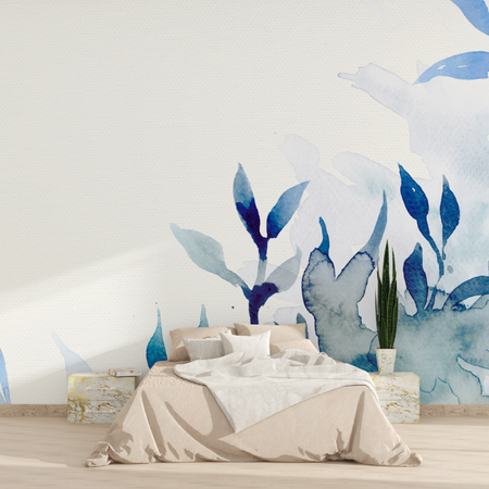 Mural Harmonious Blue Garden Watercolor Wallpaper