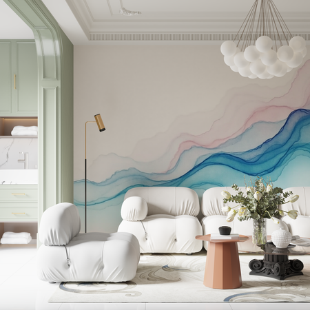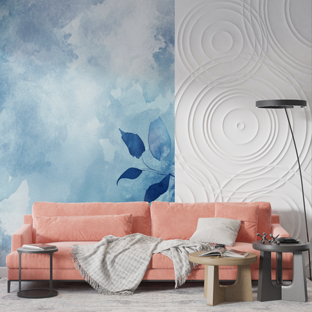Generally, blue wallpaper complements soothing, gentle tones such as white, gray, and green. However, it also works beautifully with more dynamic colors like yellow, pink, and gold for a vibrant, unique interior.