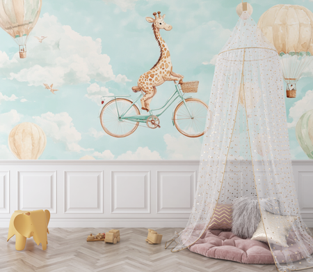Mural Beige Giraffe Animal Wallpaper on Bicycle