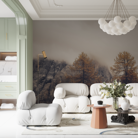 Mural Cocooning Misty Forest Wallpaper Soft Tones