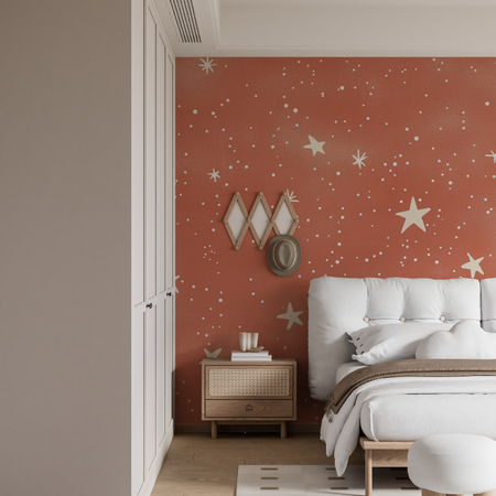 Mural Terracotta Wallpaper with Golden Shooting Stars