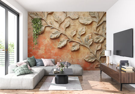 Mural Terracotta Wallpaper with Waxed Concrete Effect