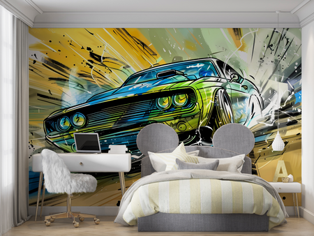 Mural American Car Graffiti Wallpaper