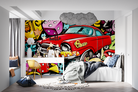 Mural Kids Car Graffiti Wallpaper