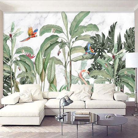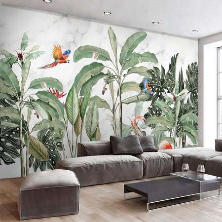 - Living Room: Create a stunning focal point behind the sofa with panoramic jungle scenes or lush greenery.