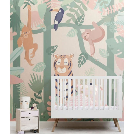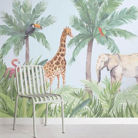 Prefer a more neutral palette? Our black and white jungle wallpaper offers a refined, artistic take on the trend. These designs evoke hand-drawn illustrations and work beautifully in modern spaces, nurseries, and playrooms. Pair with dark wood furniture or beige tones for a chic, grounded interior.