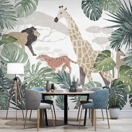 - Bedroom: Evoke a calming retreat with subtle tropical patterns or animal motifs paired with soft lighting.