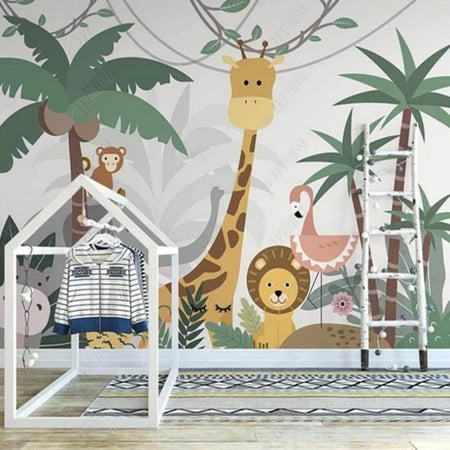 Introduce a playful, safari-like energy with jungle wallpaper featuring animals. Parrots, toucans, giraffes, and zebras come alive in vibrant colors, making them perfect for kids’ rooms or dynamic living spaces. These designs spark imagination and bring educational value to decorative choices.