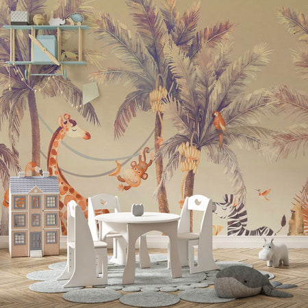 Prefer a more neutral palette? Our black and white jungle wallpaper offers a refined, artistic take on the trend. These designs evoke hand-drawn illustrations and work beautifully in modern spaces, nurseries, and playrooms. Pair with dark wood furniture or beige tones for a chic, grounded interior.