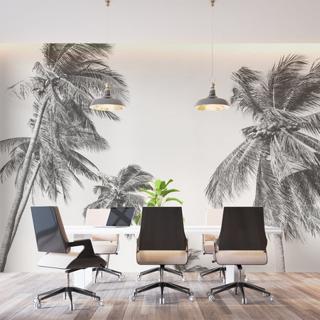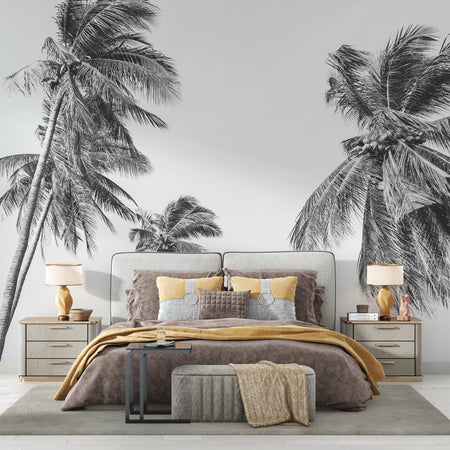 Mural Black and White Palm Tree Panoramic Wallpaper