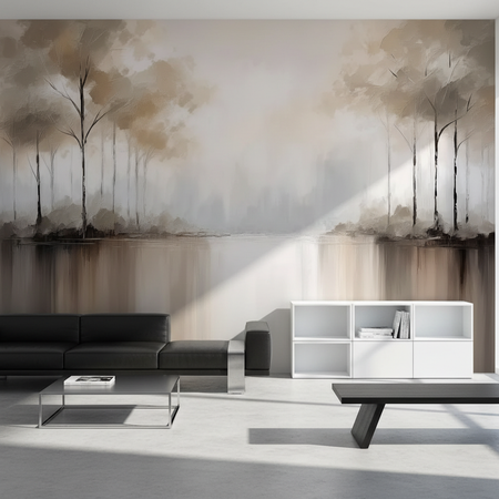 Soft Abstract Lake Trees Mural Wallpaper