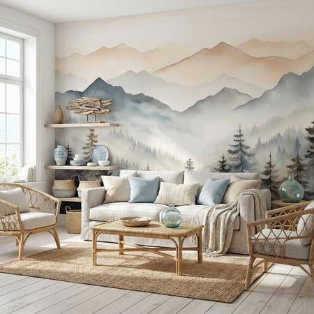 Soft Watercolor Mountain Landscape Mural Wallpaper