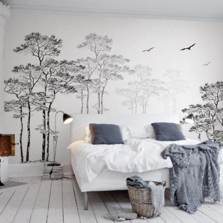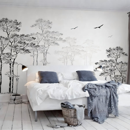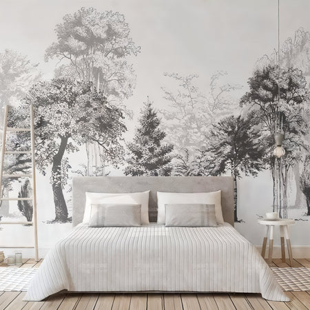Mural Black and White Forest Wallpaper