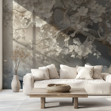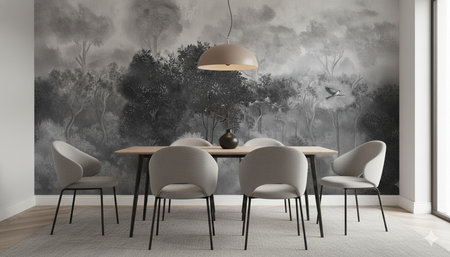 Black and white nature wallpaper is a bold and modern choice. By playing with contrast, it brings sophistication and elegance to your interior. Geometric patterns, landscapes, or botanical elements in monochrome all help create a distinctive and contemporary mood.