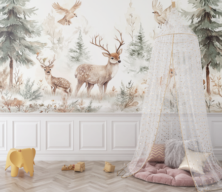 Mural Classic Baby Wallpaper Watercolor Green Forest