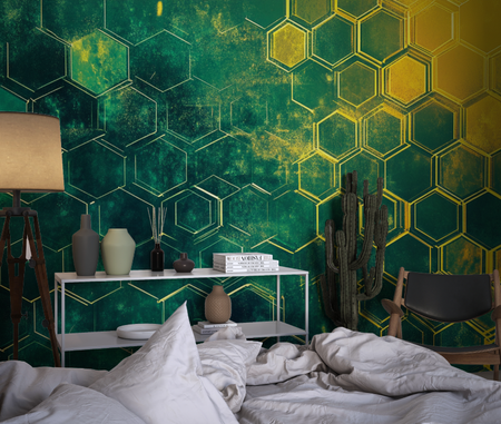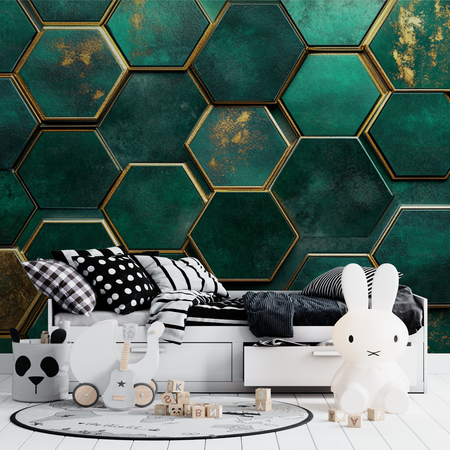 Mural Neon Green Hexagon Wallpaper for Kids
