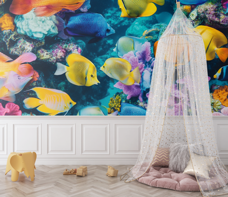 Tropical wallpaper thrives on variety—banana leaves, palm fronds, and jungle flowers in shades of green, yellow, and coral. Add animals like monkeys or tropical birds for a whimsical, vibrant touch. These lively prints are perfect for nurseries, small bedrooms, and playful living spaces.