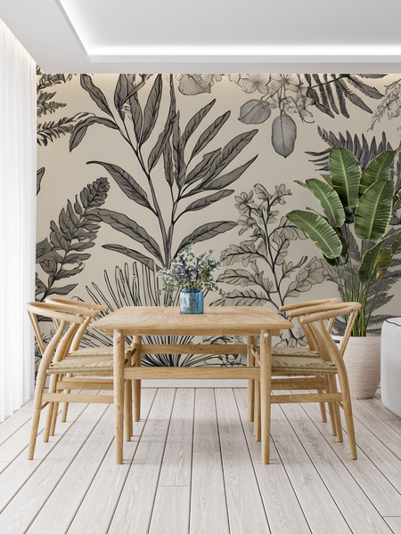 For those who prefer a more refined aesthetic, black and white tropical wallpaper offers an exotic feel without the bold colors. This style complements modern and minimalist interiors while still providing visual interest. It’s especially suitable for well-lit rooms or narrow spaces where lighter tones enhance openness and comfort.