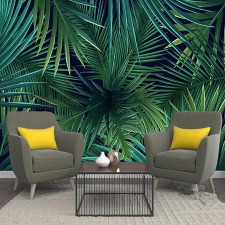 Large colorful prints may overwhelm smaller rooms, but a monochrome tropical panorama keeps the style balanced and serene. These subtle designs also work well in bedrooms, offering a calming, dream-like backdrop suitable for all ages.