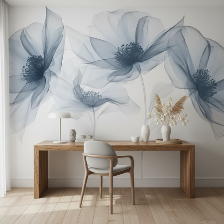Blue Transparent Floral X-Ray Mural Wallpaper