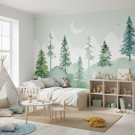 Mural Classic Baby Wallpaper Watercolor Green Forest