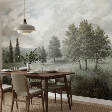 Vintage Pastel Forest Landscape Mural Wallpaper