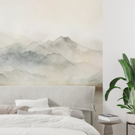 Soft Watercolor Mountain Landscape Mural Wallpaper