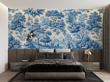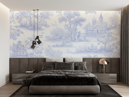 Mural Blue Toile Landscape Wallpaper