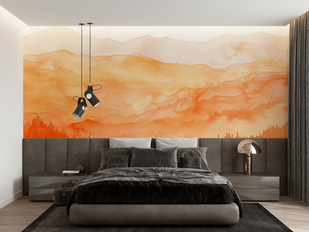 Mural Orange Landscape Wallpaper