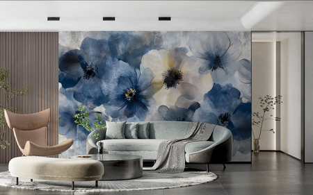 Mural Watercolor Floating Blue Flowers Wallpaper