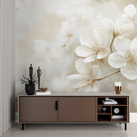 Mural Watercolor Soft Flowers Beige Wallpaper