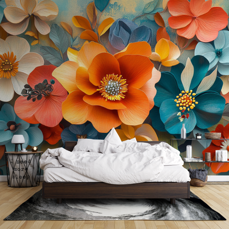 Mural Colorful 3D Floral Watercolor Wallpaper